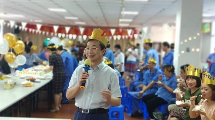 生日會開始,由俞總、???、徐總表達生日祝福及寄語。大家一起合唱生日歌,分享生日蛋糕。
